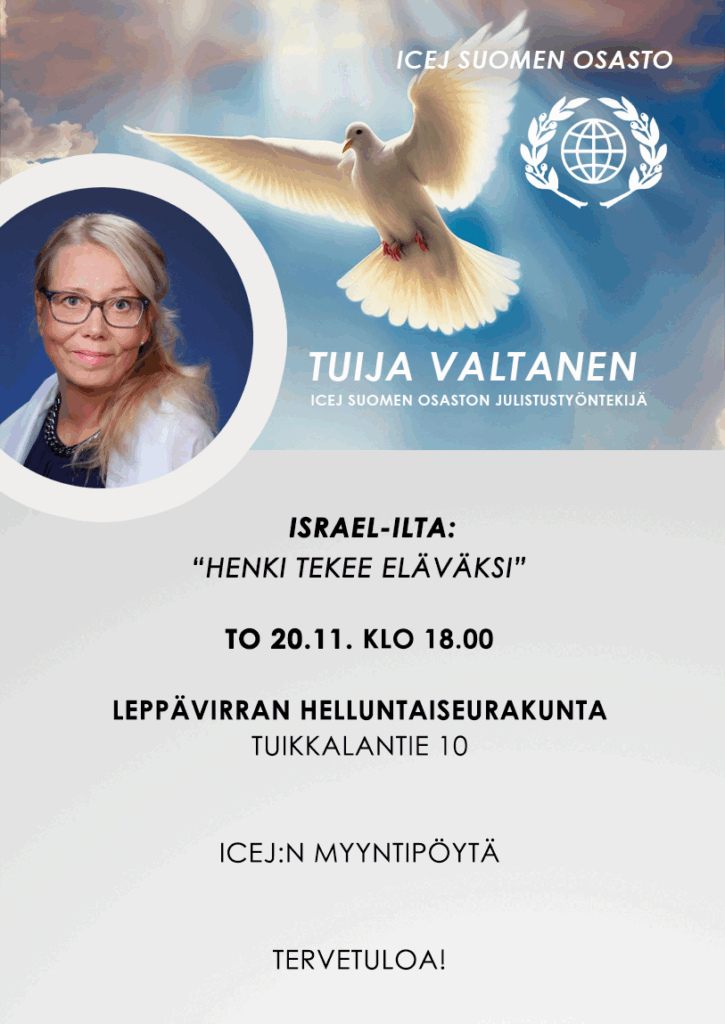 To 20.11. klo 18 Israel-ilta, Tuija Valtanen, ICEJ, AH