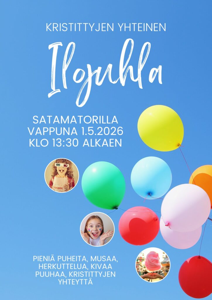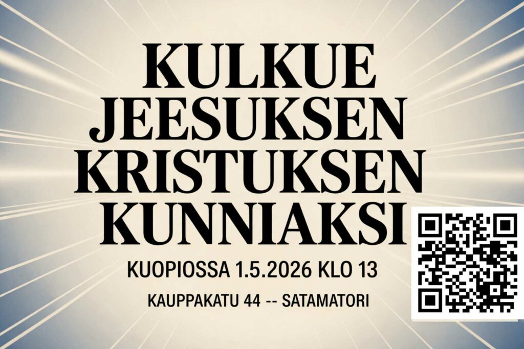 Pe 1.5. (Vappu) klo 13 Kulkue Jeesuksen Kristuksen kunniaksi ja klo 13.30 Kristittyjen yhteinen ILOJUHLA Satamatorilla Kuopiossa