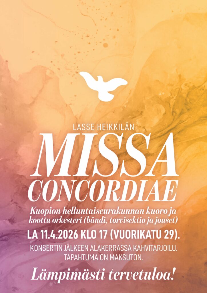 La 11.4.2026 klo 17. Missa Concordiae -konsertti Kuopion helluntaiseurakunnassa lisäys 31.3.